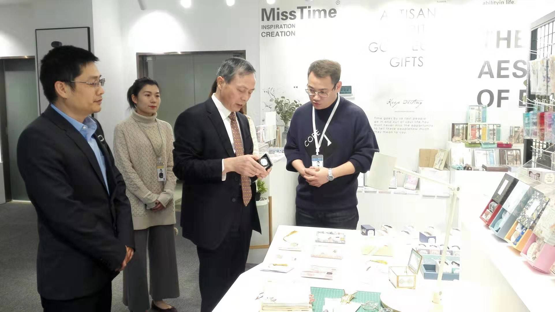 虞岳明一行先后考察了拾光藝創文創產品展示區、文創內容輸出演示區和產品組、品牌組、插畫組等員工工作區,并與拾光藝創核心團隊進行座談。在聽取相關情況匯報后,虞岳明對拾光藝創工作給予充分肯定。一是拾光藝創團隊年輕富有活力,協作精神好,危機意識強。二是善于運用頭腦風暴,注重產品創意設計,注重提供增值服務,業務發展勢頭好。三是年輕黨員多,企業文化很有特色。他指出,拾光藝創發展實踐證明,集團公司大力培育工美文化主業,推進文化與旅游、創意、數字經濟深度融合發展的路子是正確的。